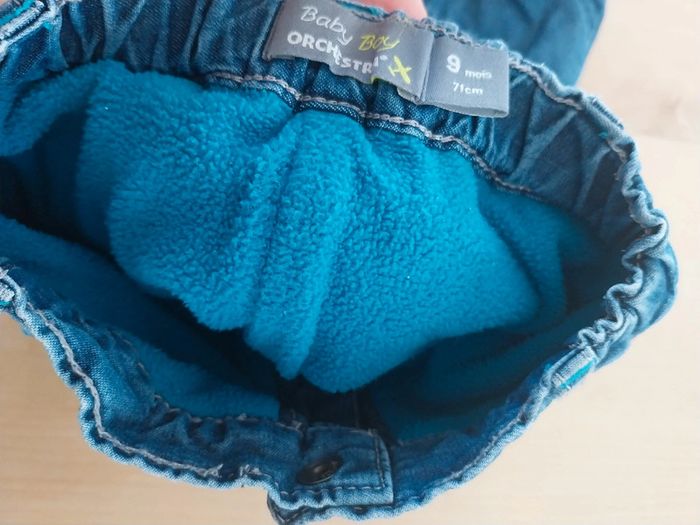 Pantalon jean bébé doublé fourré chaud 9 mois - photo numéro 3