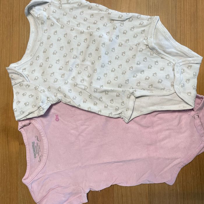Deux body manches courtes un en rose orchestra et un blanc avec des motifs moutons kitchoun