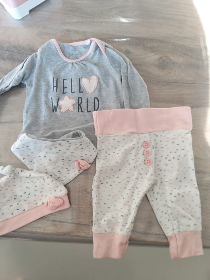 Sous pull + legging + bavoir + foulard Taille 1 mois Tqf