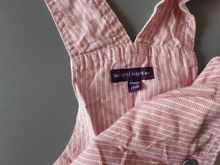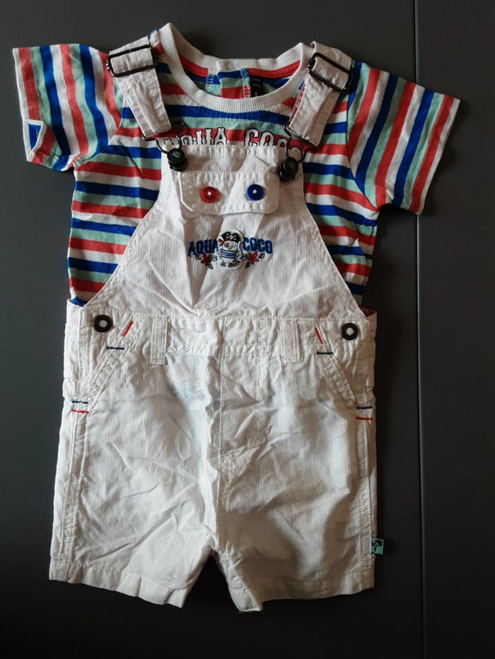 Ensemble Lavé mais non porté Tsirt manches courtes Fermeture par 3 pressions dans le dos Salopette bretelles ajustables, pressions à la taille 12 mois Sergent Major #stef59dkmx12mois
