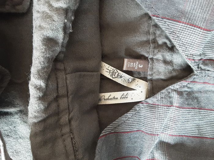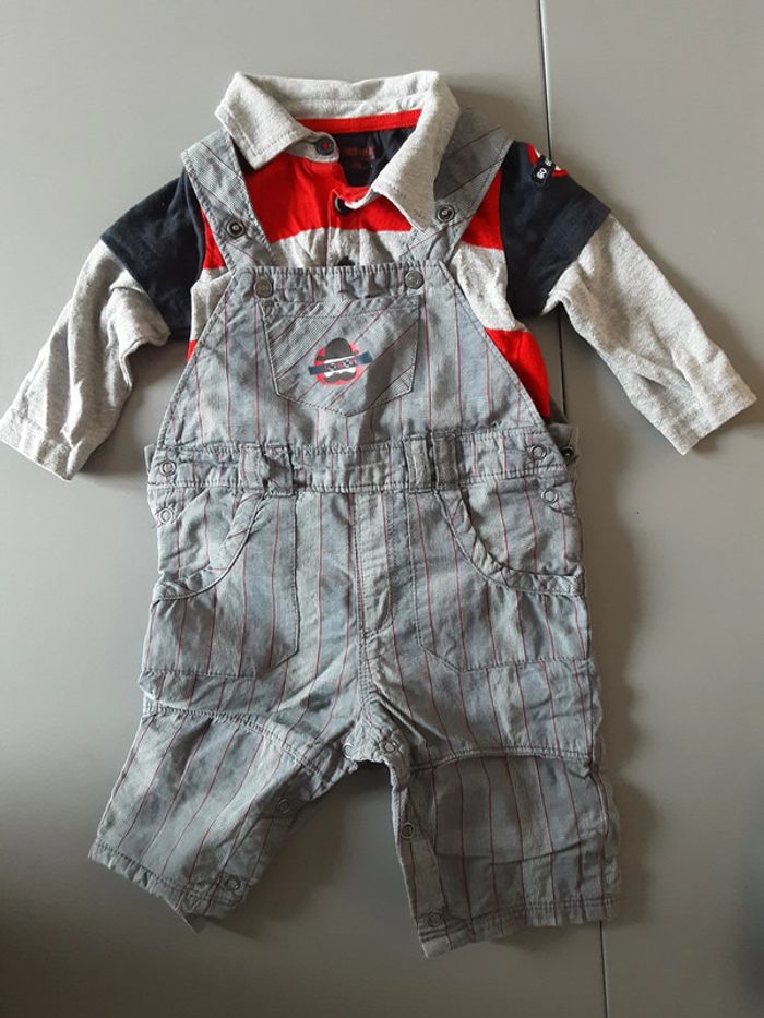 Ensemble Tsirt manches longues fermeture par boutons et pressions sur l’avant Salopette bretelle réglable par 2 hauteurs de pressions, taille fermé par pressions Orchestra 3 mois Peu porté #stef59dkmx3mois