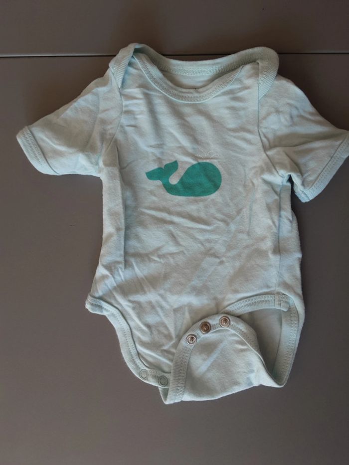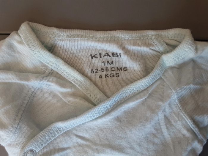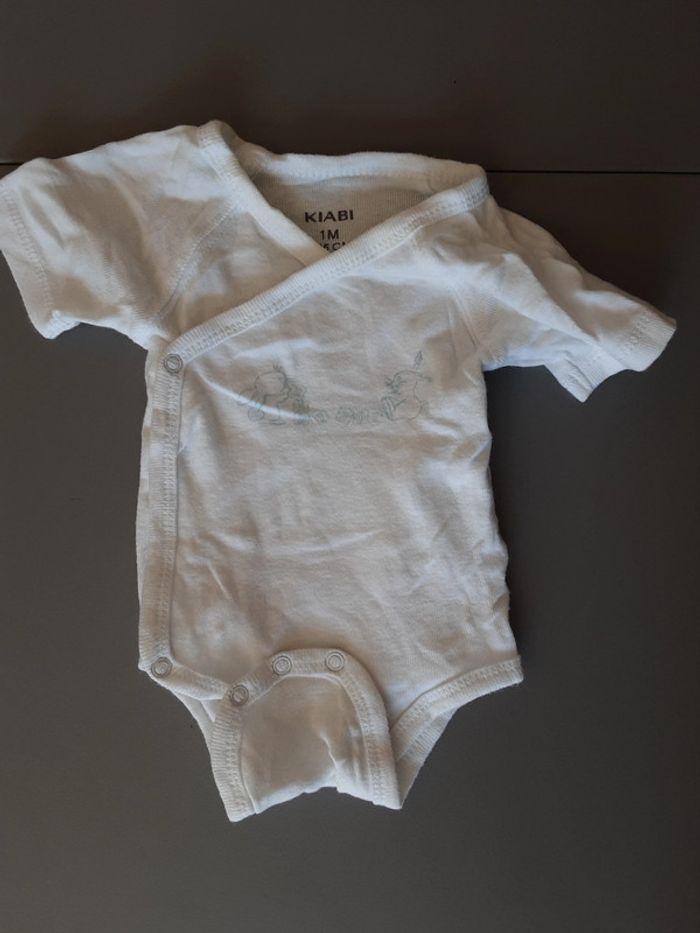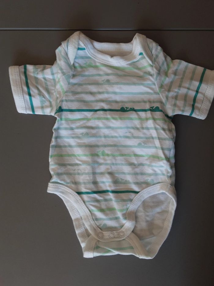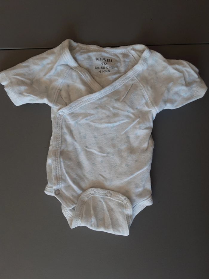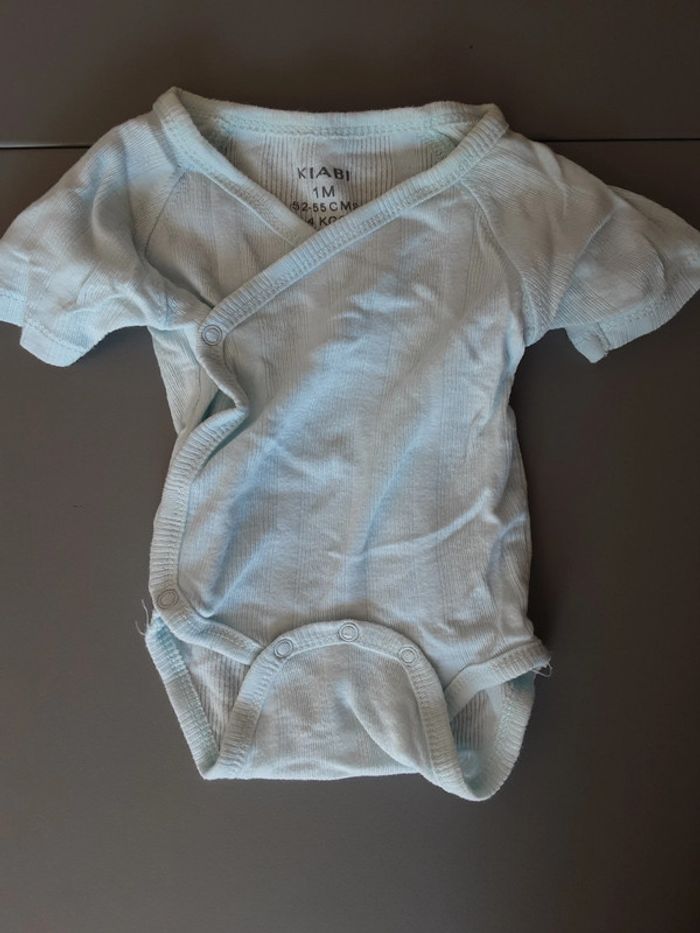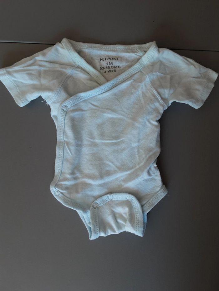 3 bodies dans des tons vert et gris, Vertbaudet enfilage par la tête fermeture par pression 1 mois 54 cm 4 bodies blanc et bleu Kiabi cache cœur fermeture par pression 1 mois 52-55 cm #stef59dkmx1mois