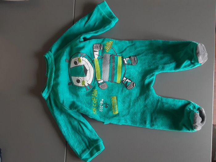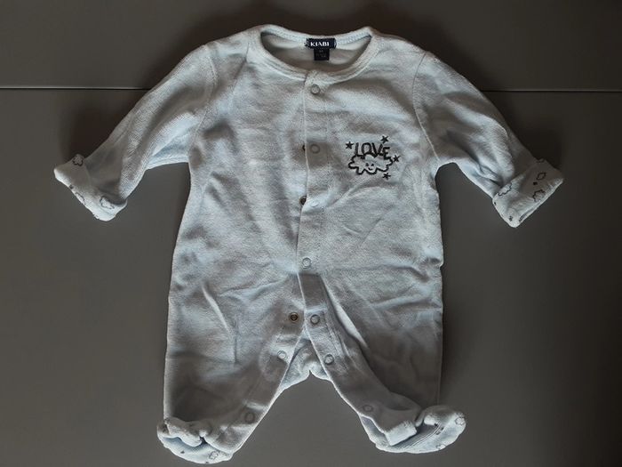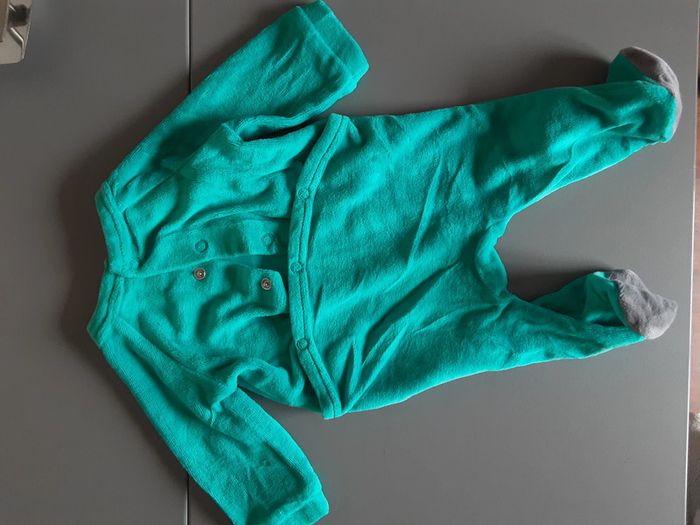 Un pyjama gémo vert/bleu fermeture par pression dans le dos Un pyjama kiabi bleu clair fermeture par pression sur l’avant Porté tous les 2 Taille 1 mois 52-55cm #stef59dkmx1mois