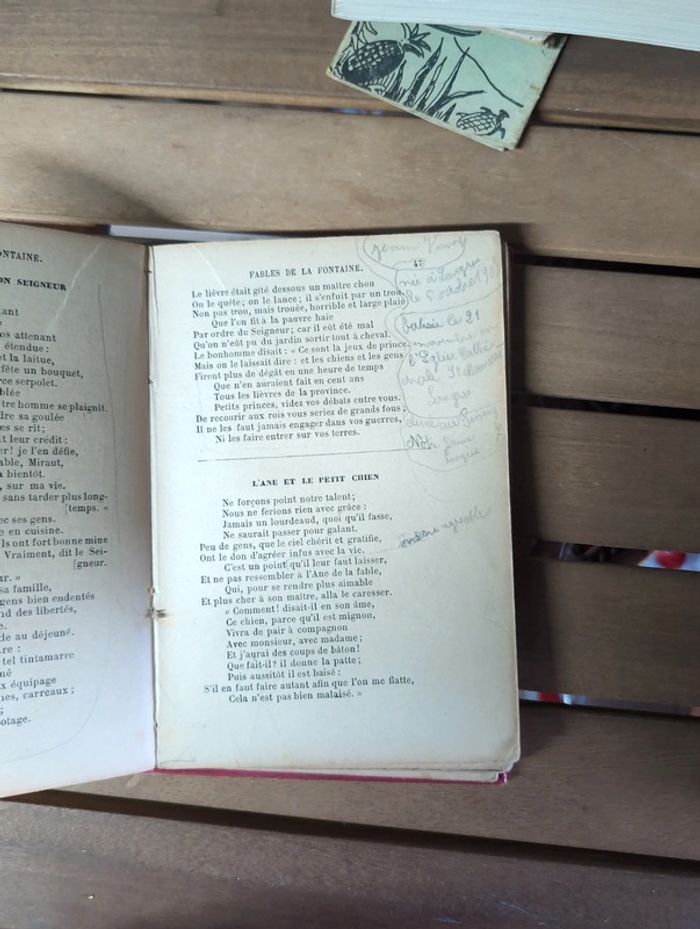 Très ancien livre Fables de la Fontaine Quelques écritures de la personne à qui appartenait ce livre Début 1900