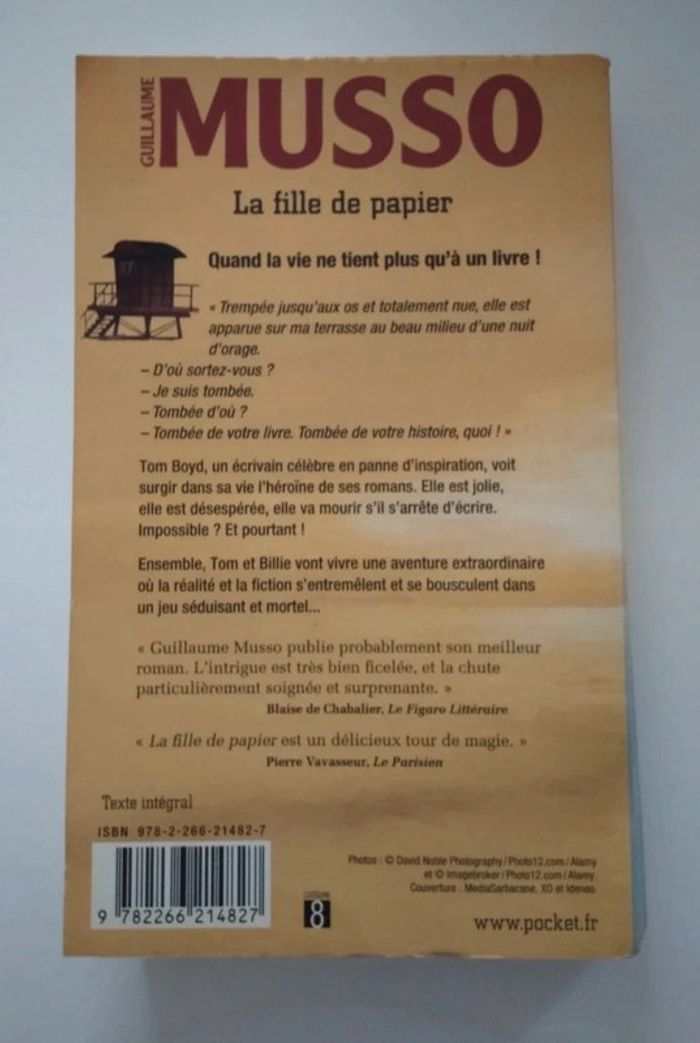 Livre de Guillaume Musso La fille de papier Éditions pocket "La fille de papier" légèrement abîmé au niveau des bords ; extérieur des pages a un peu jauni mais le livre reste en très bon état #livrejustine8059