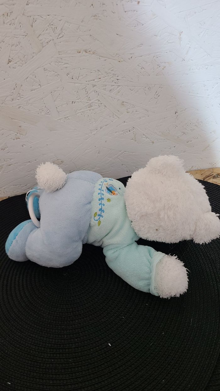 Doudou Peluche musicale Ours bleu TEX Baby Carrefour Papillon