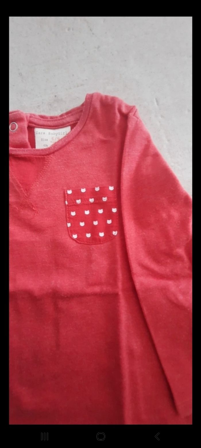 Tee shirt rouge à manche longue 2 Pressions dans le dos Petite poche devant Taille 6-9 mois