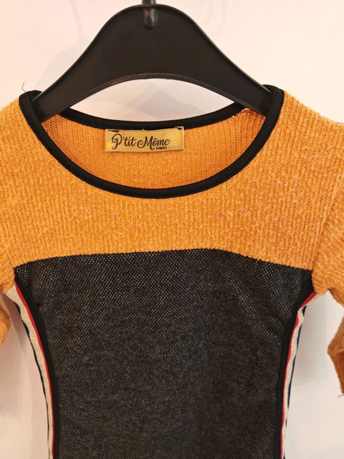 Robe longues d'hiver à manches longues en gris et jaune moutarde, taille 4 ans. Fabriquée en France.