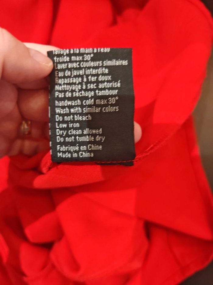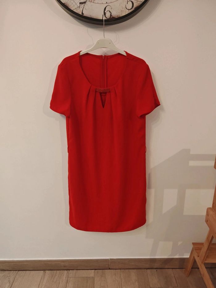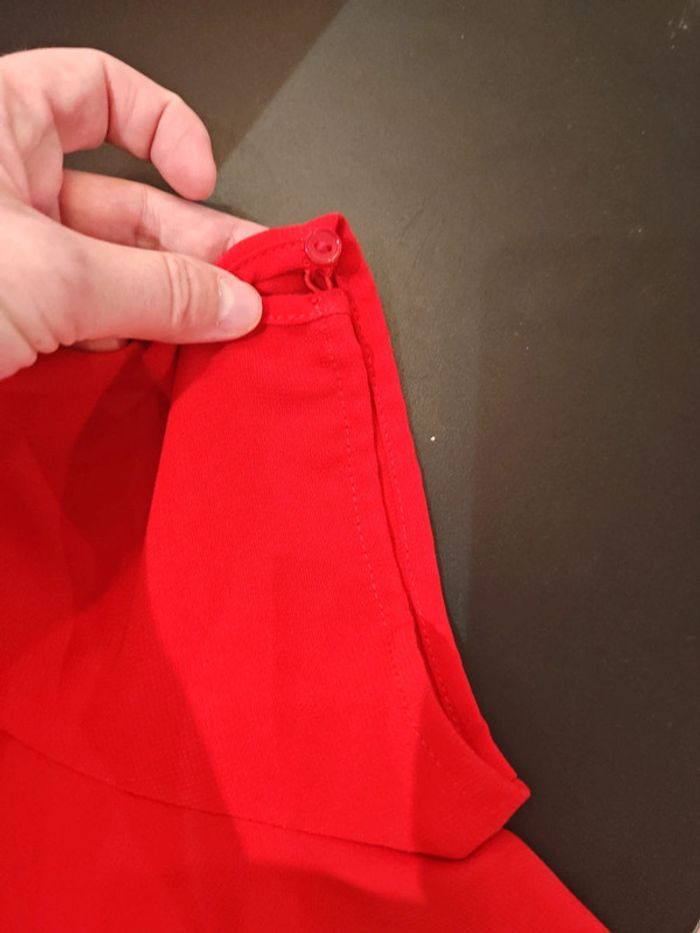 Jolie robe rouge idéale pour cérémonie ou Noël par exemple, manches courtes. Pas d'étiquette de taille mais correspond à un 40