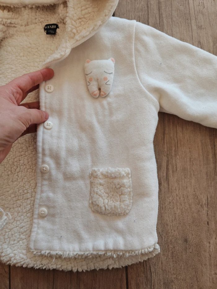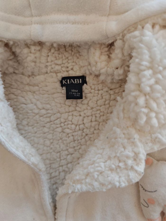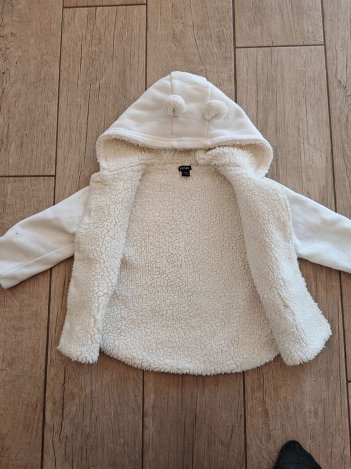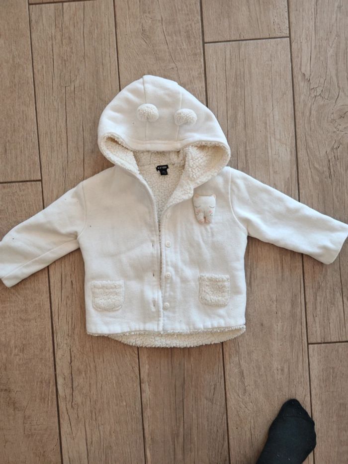 Gilet blanc cassé avec capuche, épais tient chaud. Taille 18 mois. Mixte 👉 Réduction sur les lots
