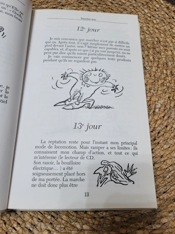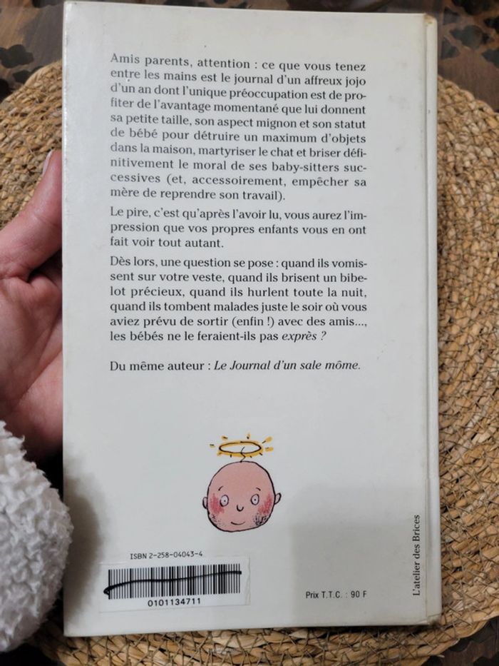Les memoires d un bébé en colère.... A lire et à relire....fou rires garantis... S'identifier Ma vie d'affreux jojo : les mémoires d'un bébé en colère de Simon Brett couverture Ma vie d'affreux jojo : les mémoires d'un bébé en colère de Simon Brett ( Look who's walking) Catégorie(s) : Littérature => Francophone , Enfants => 10-12 ans , Enfants => 12-15 ans Critiqué par Ploumousse, le 2 juin 2010 (Inscrite le 28 avril 2010, 41 ans) La note : 10 étoiles Visites : 4 537 Acheter sur Amazon Attention, chef-d'oeuvre !!! Ce livre est la suite d'un premier tome nommé "Journal d'un sale môme". Résumé : Un bébé qui vient d'avoir un an raconte le déroulement de la deuxième année de sa vie. Ses parents, ses grands-parents, les nounous, les autres enfants, les voisins... tout le monde en prend pour son grade de la part de ce bébé diabolique, atterré par la bêtise des autres et bien décidé à faire sa loi. Le livre est écrit à la première personne, narré par le bébé lui-même. Les parents sont nommés "lui" et "elle". On ne loupe rien de ce qui fait la vie d'un petit garçon d'un an, mais le point de vue change car c'est lui qui raconte son histoire : comment il va apprendre à marcher afin d'augmenter son potentiel de destruction, comment il va se débrouiller pour savoir dire non uniquement pour gonfler ses parents, comment il va comprendre qu'en pleurant à 3H du matin il va les rendre fous, comment il va faire tourner en bourrique toutes les nounous pour empêcher sa mère de reprendre le travail... Satisfaisant. Plus de photos sur demande. Envoi sous 24h_48h