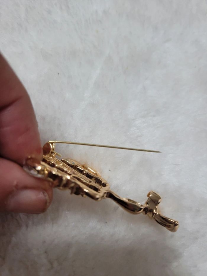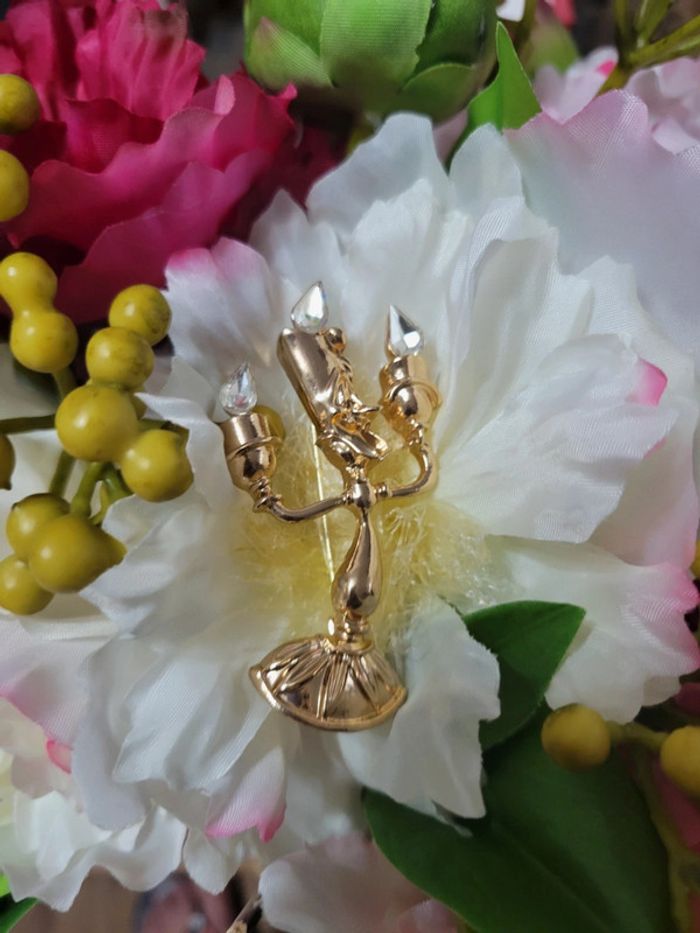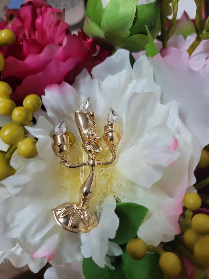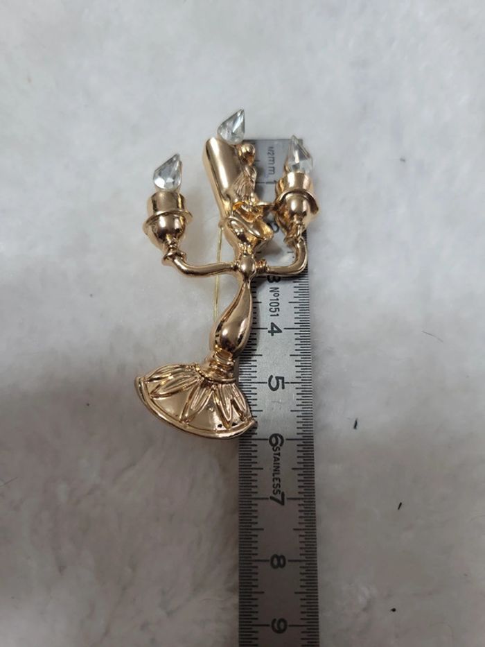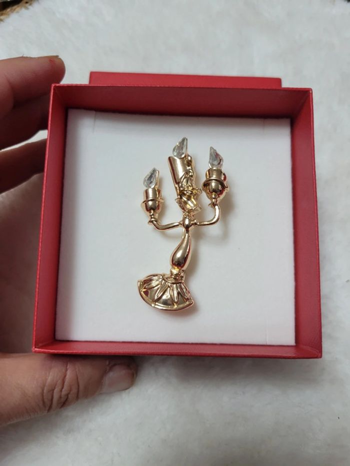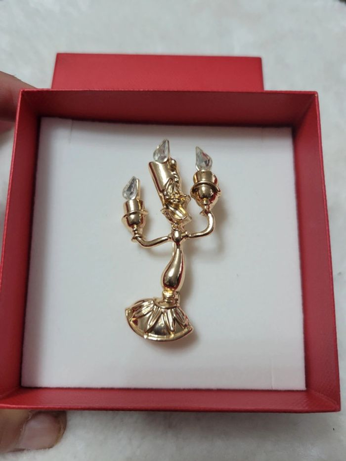Magnifique broche chandelier doré et bougies flamme zirconiums...