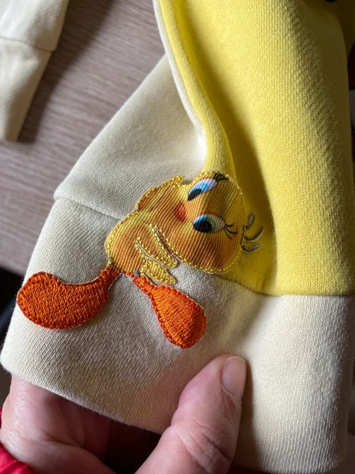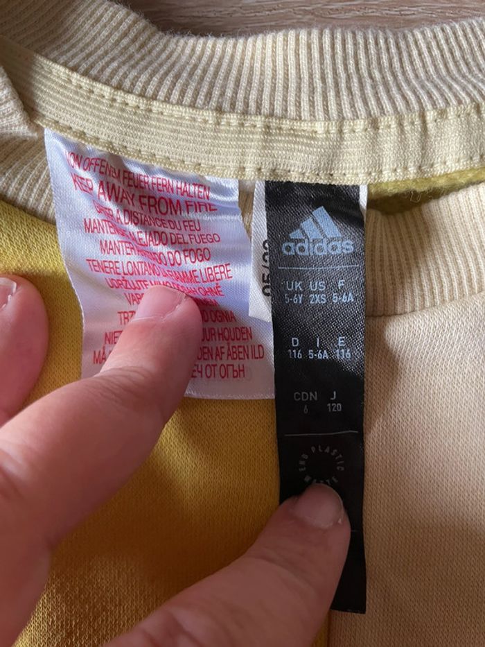 Très bon état . A été customisé avec un winny l’oursin et titi car j’ai camouflé un peu de bouloche a cause d’une tache frotté . Le reste est en très bon état . Paye 45 euros sur le site adidas . Le t-shirt et le pantaysontvé vente sur mon dressing #ayana526ans