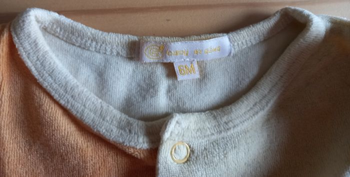 Vends pyjama en velours pour bébé Taille 6 mois de marque Baby by Gémo en très bon état.