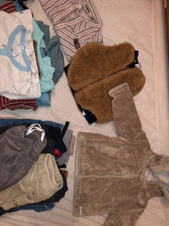 Très bon état 1 chemise 1 jogging 6 tee shirt 3 pyjamas 1 petit gilet capuche très chaud Une veste sans manche fourrure 2 bodies 11 pantalons 26 articles 15 euros