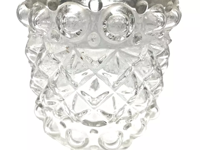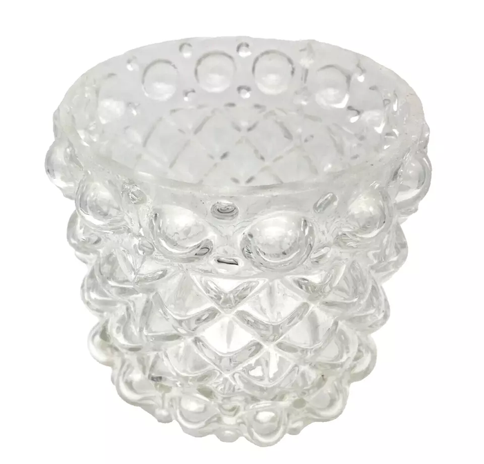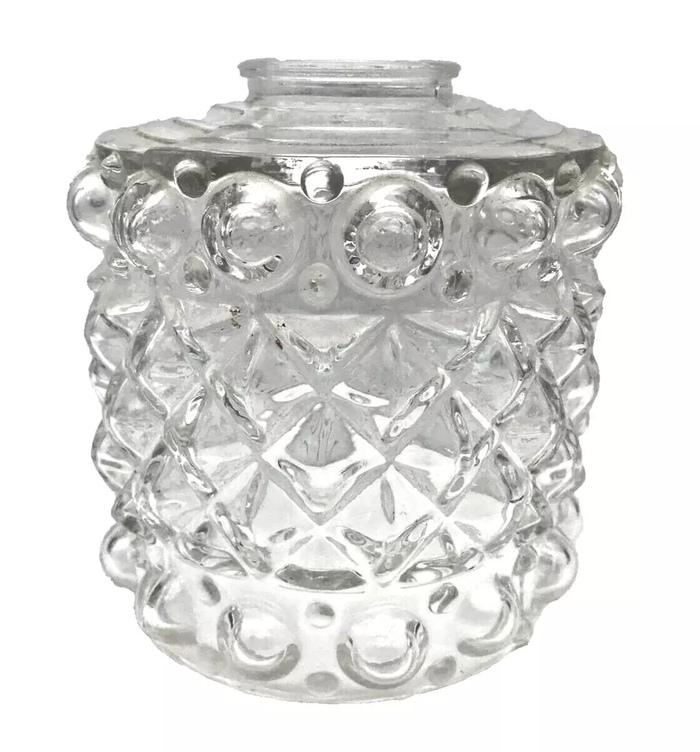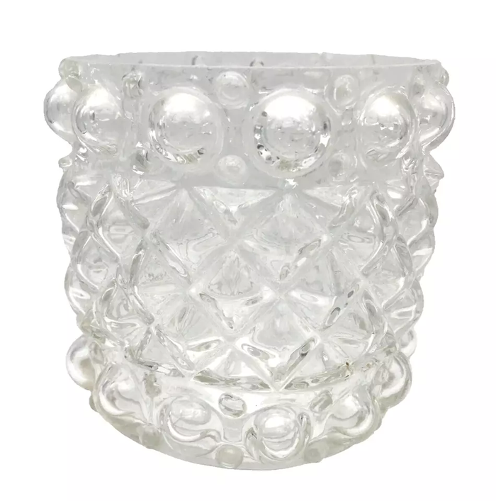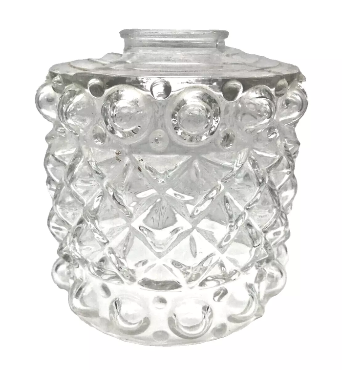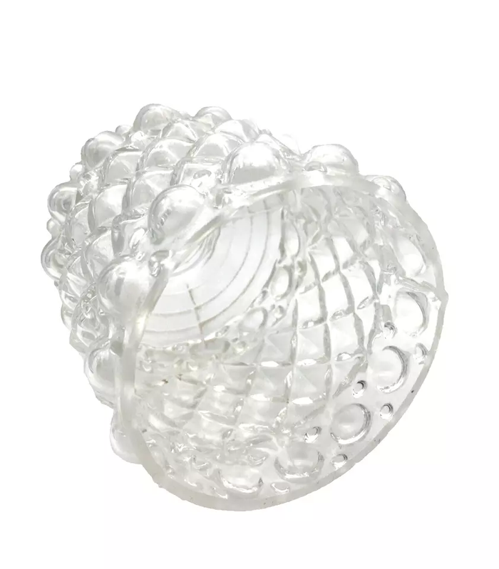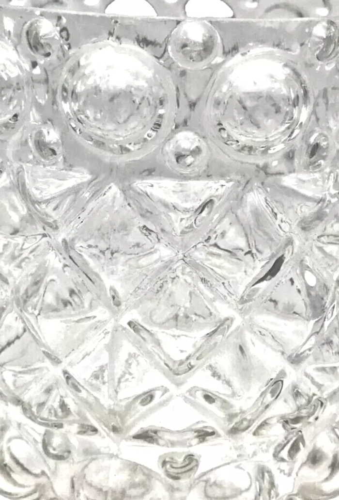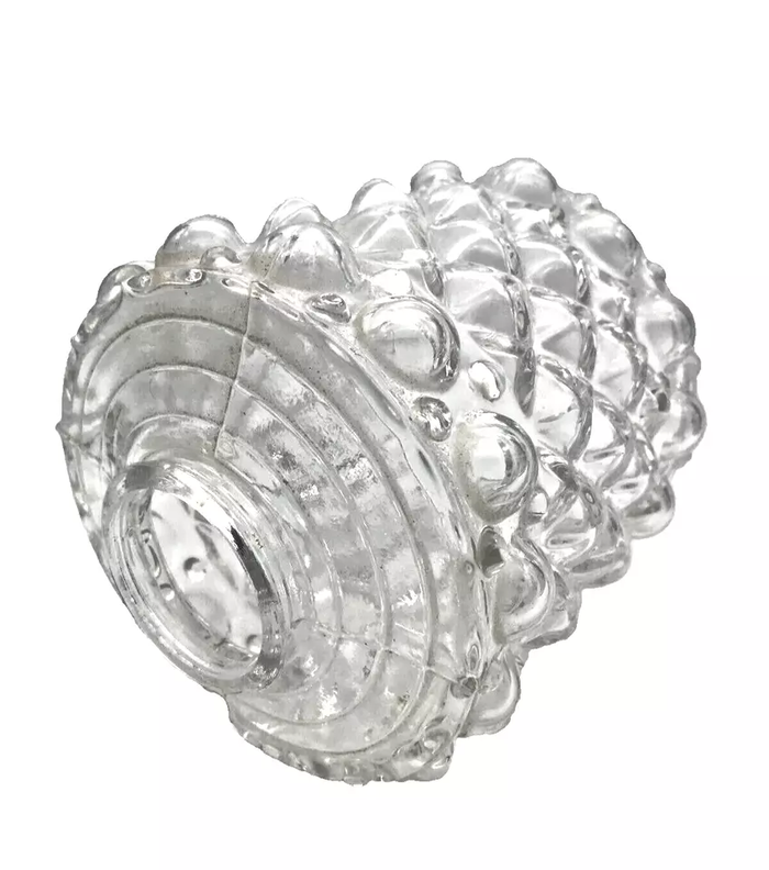 Années 1970 Abat-jour / Globe moderniste "Bubble Glass" deux bouches pour suspension Dans le style HelenaTynell designer finlandaise, pionnière de l' art du verre finlandais. Verre transparent moulé Hauteur : 135mm Diamètre : 120mm Base : 50mm Poids : 585grs