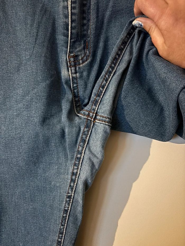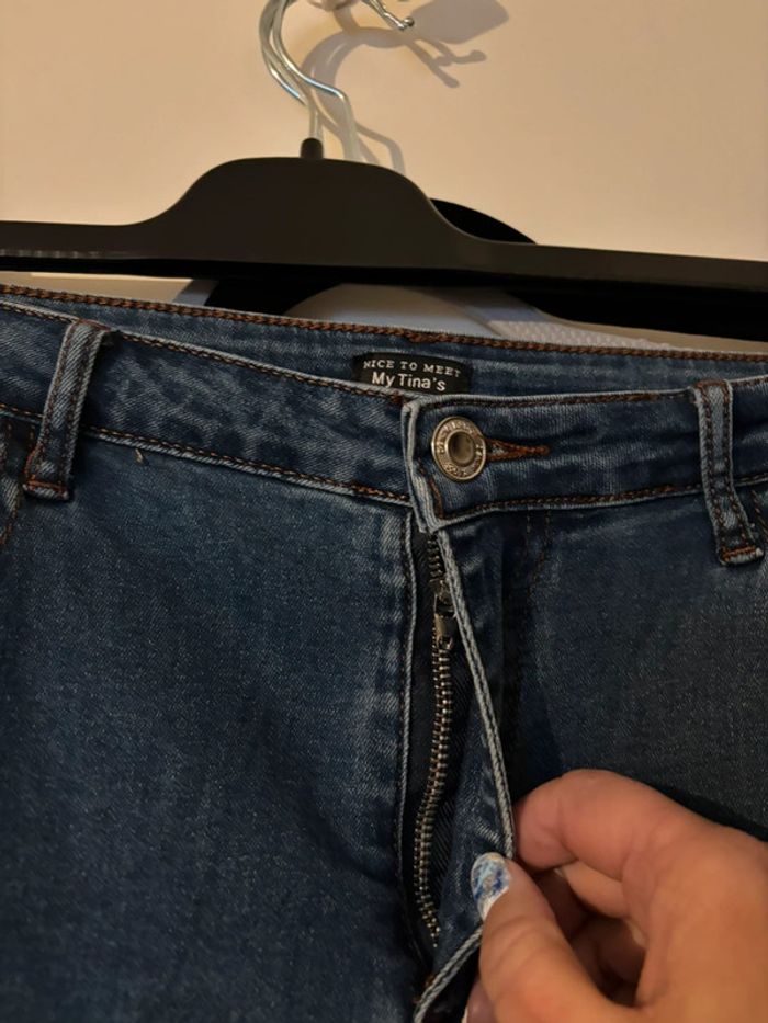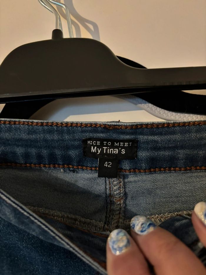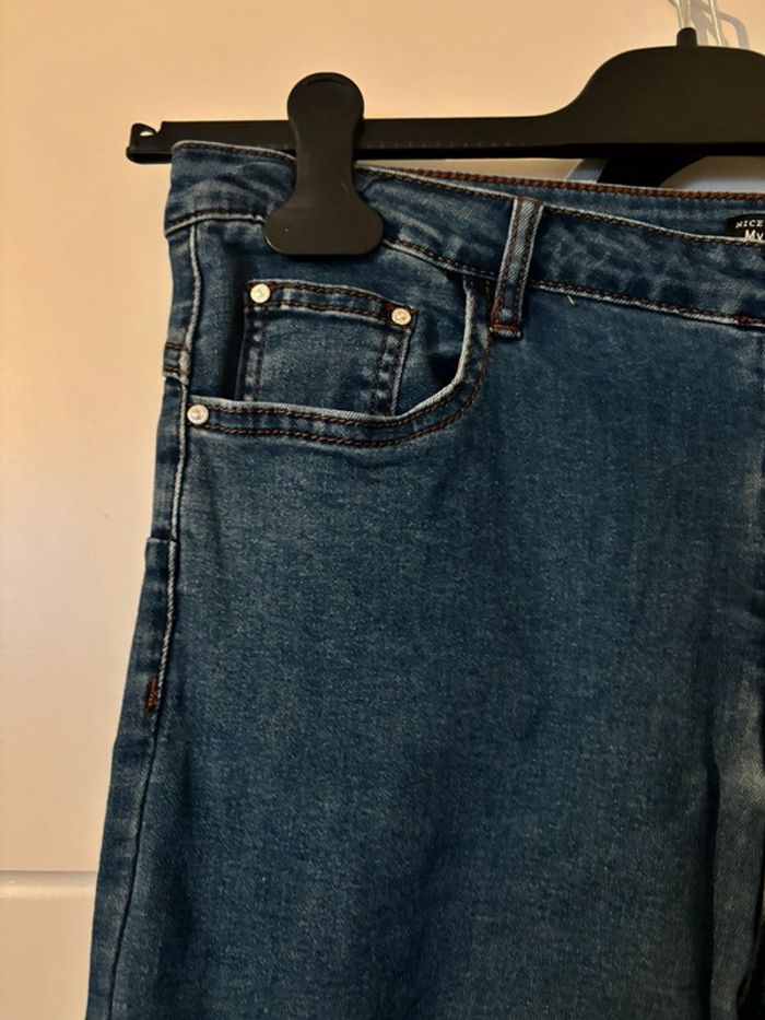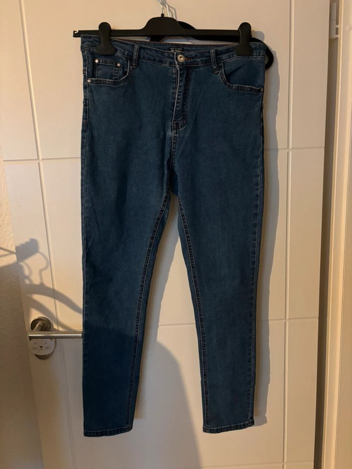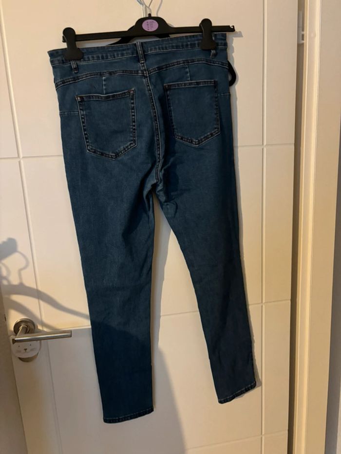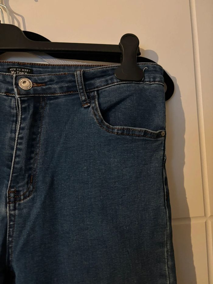 Jean de couleur bleu. Coupe skinny et il est extensible. Bon état, usure au niveau de l’entrejambe mais encore très mis sans problème. Taille 42. - Largeur ceinture : 44 cm. - Longueur : 99 cm.