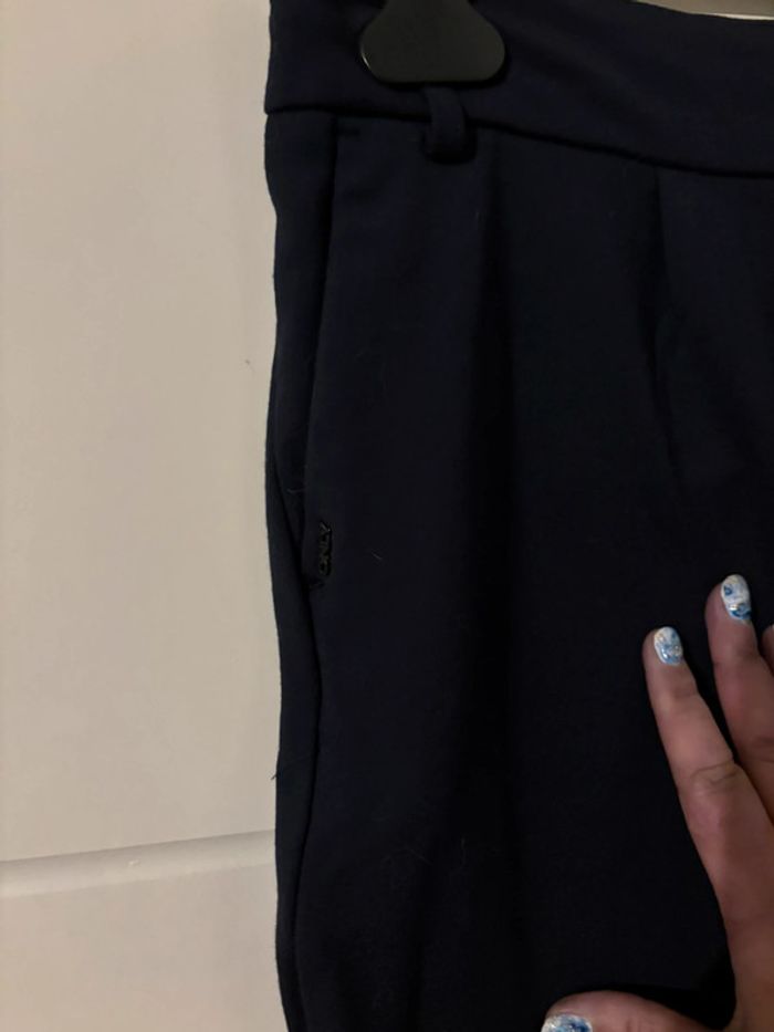 Pantalon skinny de couleur bleu marine de chez Only. Très extensible. Très bon état. Taille L et longueur 30. - Largeur ceinture : 42 cm sans étirer. - Longueur totale : 84 cm.