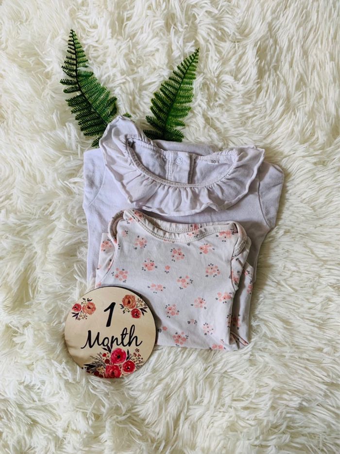Lot 2 bodies manches longues fille 1 M en très bon état - body TAO à fleurs - body blanc à col Zeeman 👗Pour voir tous les articles fille en taille 1 mois: #sosolgfille1m #tao #petitbateau #jacadi #sergentmajor #dpam #boutchou #gemo #petitbisou #vertbaudet #obaibi #petitbeguin #graindeblé #sucredorge #orchestra #tao #motsdenfants #tex #obaibi #zeeman #creeks #vertbaudet