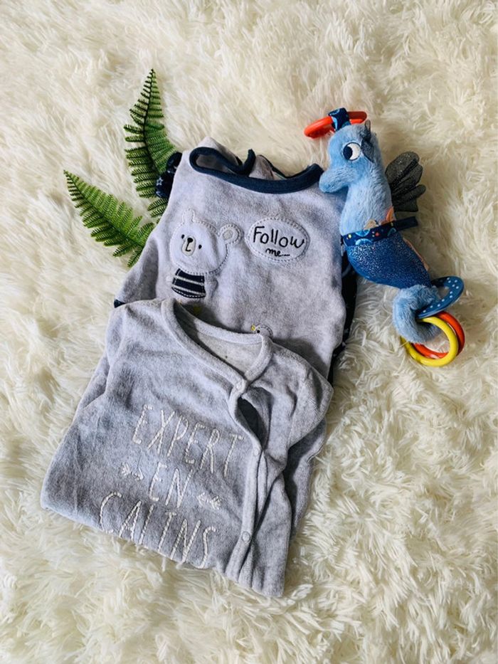 Lot 2 pyjamas 1 pièce grenouillère garçon 1M en très bon état - grenouillère grise expert en câlins Kimadi - grenouillère Fallow me Tex 👕Pour voir tous les articles garçon en taille 1 mois: #sosolggarcon1m #kimadi #petitbateau #jacadi #sergentmajor #dpam #boutchou #gemo #petitbisou #vertbaudet #obaibi #petitbeguin #graindeblé #sucredorge #orchestra #tao #motsdenfants #tex #obaibi #zeeman #creeks #gemo