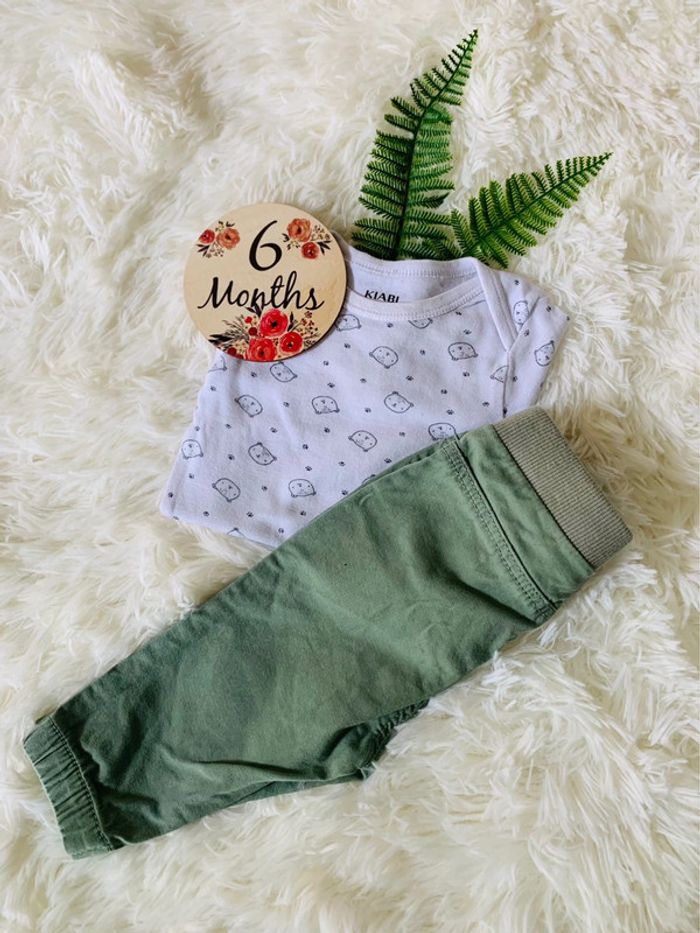 Ensemble tenue garçon 6M en parfait état - pantalon kaki Mots D Enfants - body Kiabi oursons 👕Pour voir tous les articles garçon en taille 6 mois: #sosolggarcon6m #motsdenfants #petitbateau #jacadi #sergentmajor #dpam #boutchou #gemo #petitbisou #vertbaudet #gemo #petitbeguin #graindeblé #sucredorge #orchestra #tao #motsdenfants #tex #obaibi #zeeman #creeks