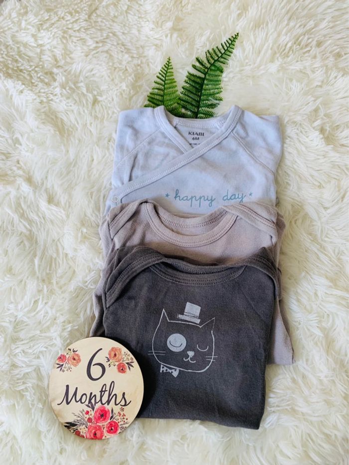 Lot 3 bodies manches longues garçon multi marques 6m - photo numéro 1