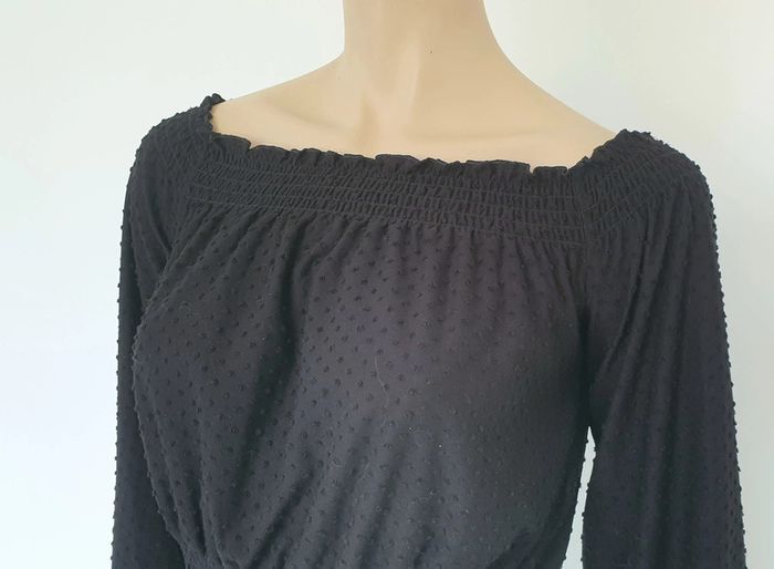 Une blouse courte noire à pois de 33cm de long Aisselles à aisselles 38cm Manches longues Taille S