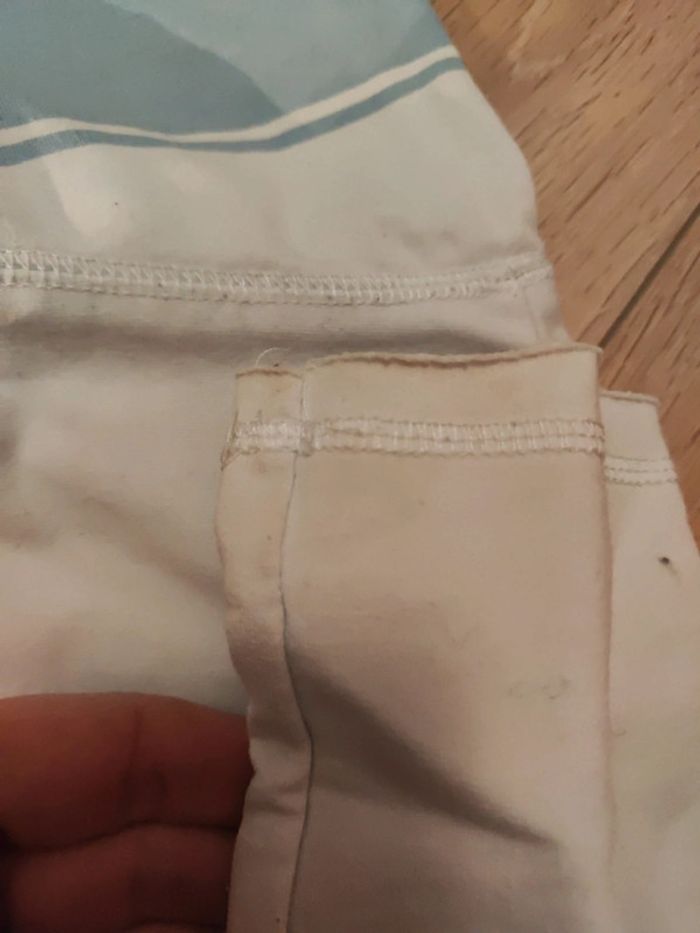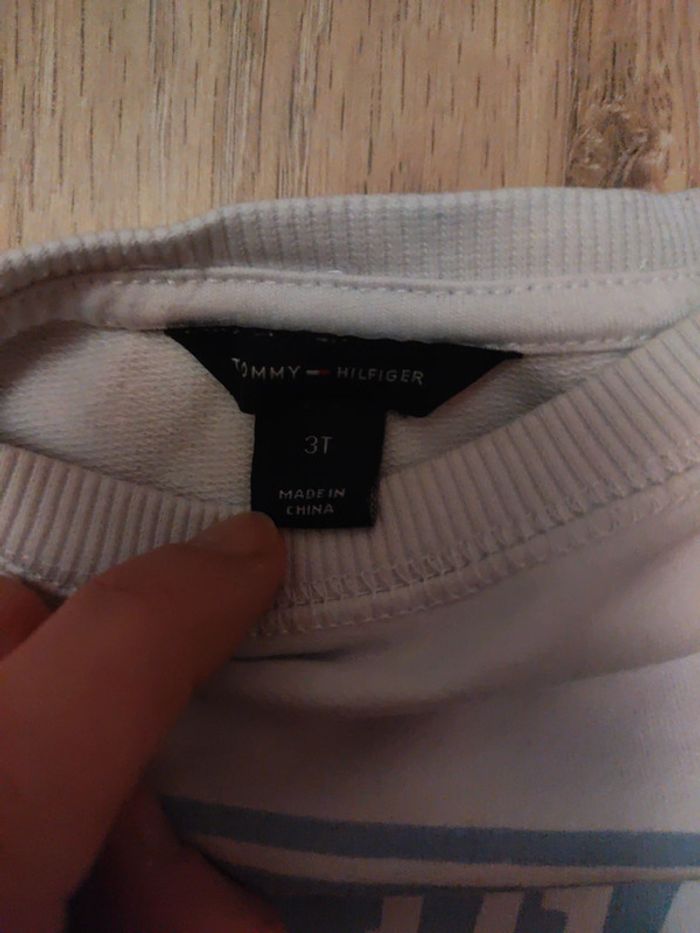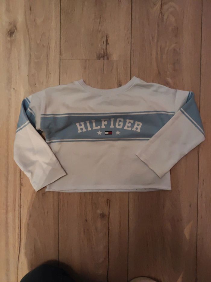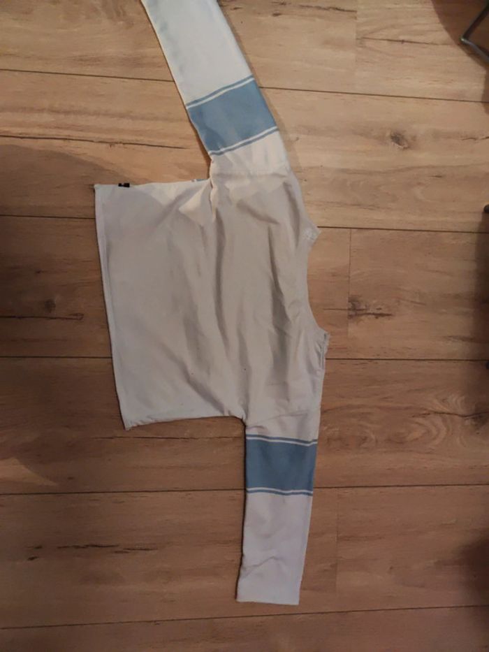 Pull leger fille court taille 3ans, trace sur la manche cf photo, blanc et bleu
