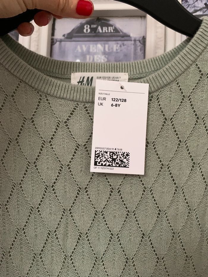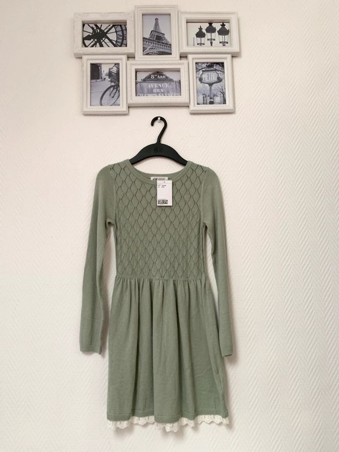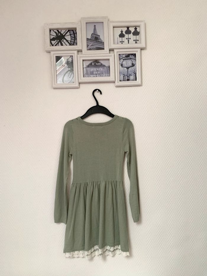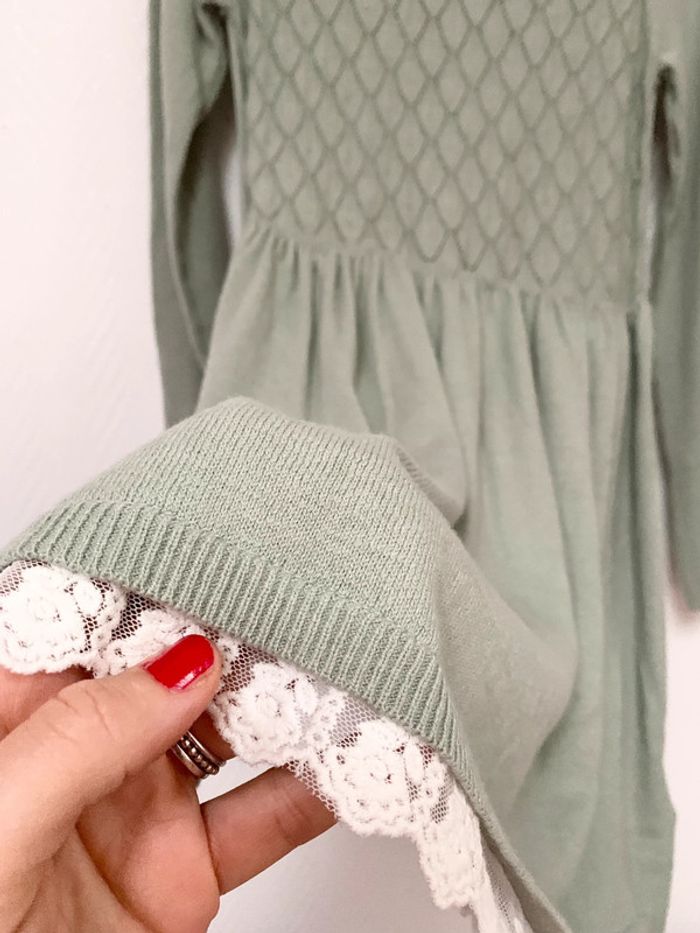 Jolie robe en maille et dentelle romantique Couleur vert sauge Taille 6/8ans Neuf avec étiquette