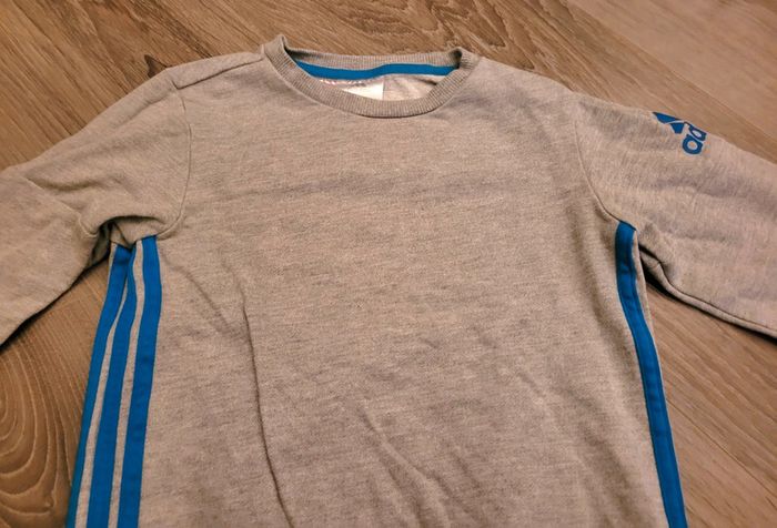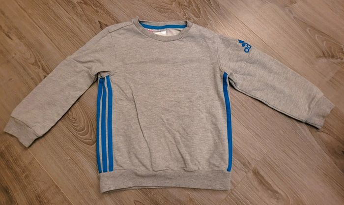 Sweat gris bandes bleues manches longues marque Adidas 2-3 ans