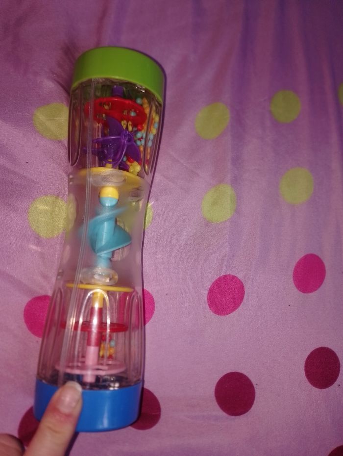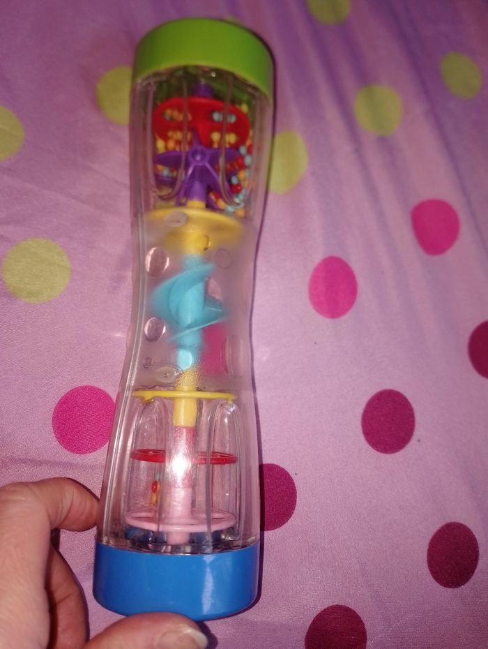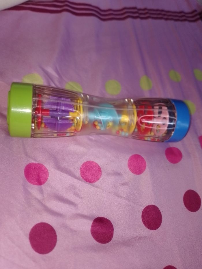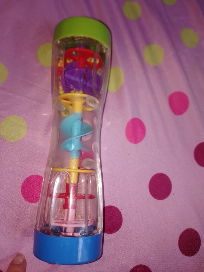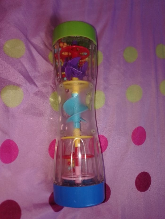 Bâton de pluie avec 1 bout qui fait miroir Retourne ce bâton de pluie et observe les billes de couleur. En perlant comme des gouttes, celles-ci reproduisent le son apaisant de la pluie qui tombe. Grâce à ses courbes idéales tu peux le prendre en mains facilement et le déposer où bon te semble. Grâce à sa prise en main facile, ce jouet peut facilement être utilisé comme un hochet. Parfait pour le développement sensoriel.
