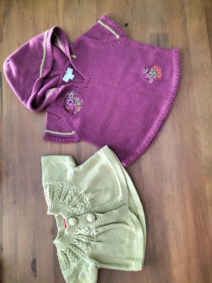 Un gilet boléro MC Un pull a capuche sans manche Excellent état #duplaix - 6 mois fille