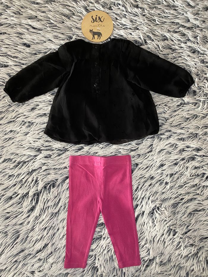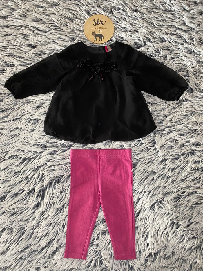 ensemble blouse noire transparente au bras et legging rose 6 mois ORCHESTRA