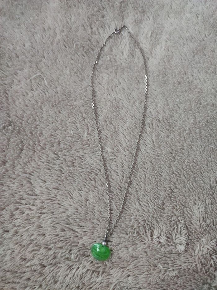 Collier fantaisie argenté avec pendentif coeur Vert🌼