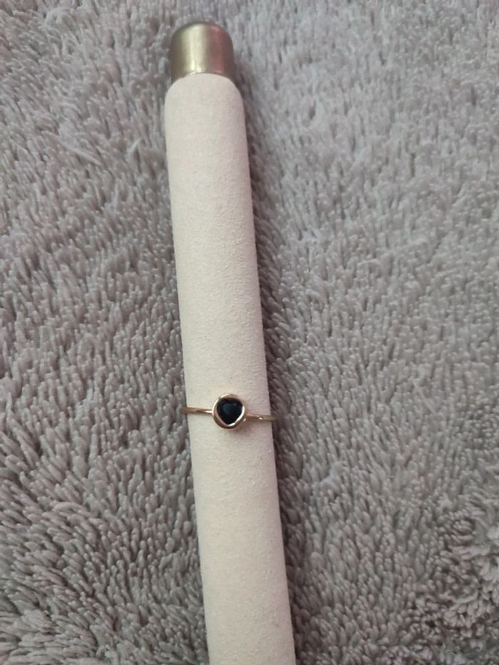 Bague dorée en acier inoxydable avec petite pierre noire au centre, fine, ajustable🌼