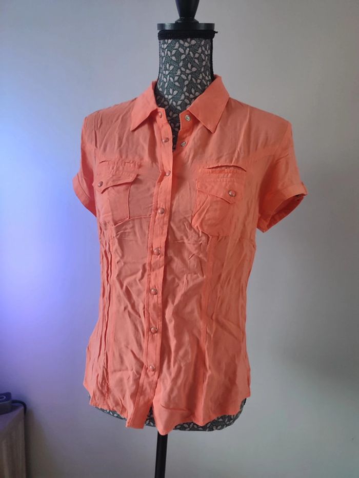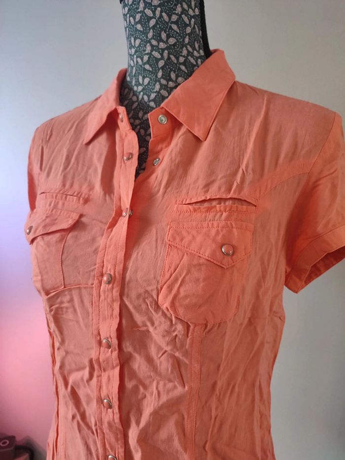 Blouse légère couleur saumon taille 40 bréal, à pressions, légère, petit défaut présent sur les photos