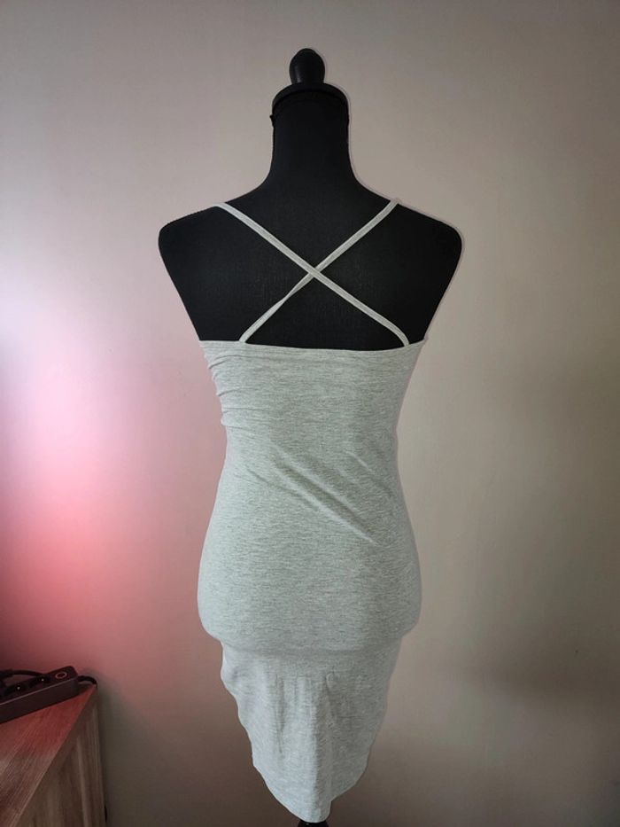 Robe moulante grise taille S avec bretelles croisées dans le dos