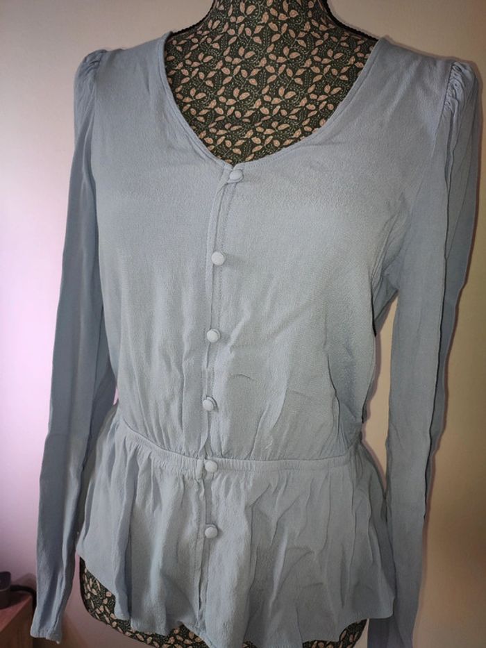 Blouse camaïeu taille M couleur lilas resserrée à la taille