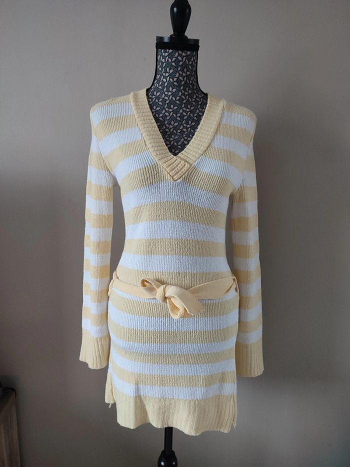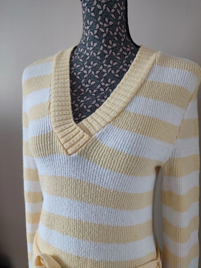 Robe rayée vintage blanche et jaune taille S