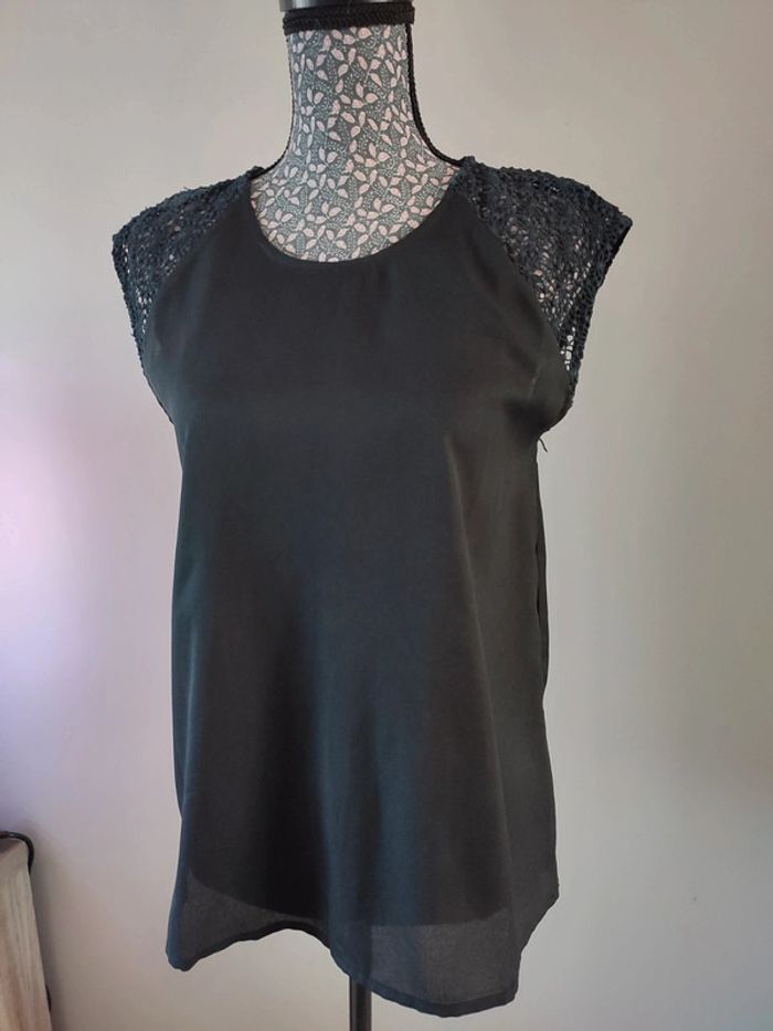 Blouse noire Kiabi taille 42 avec épaules en dentelle 🛍️