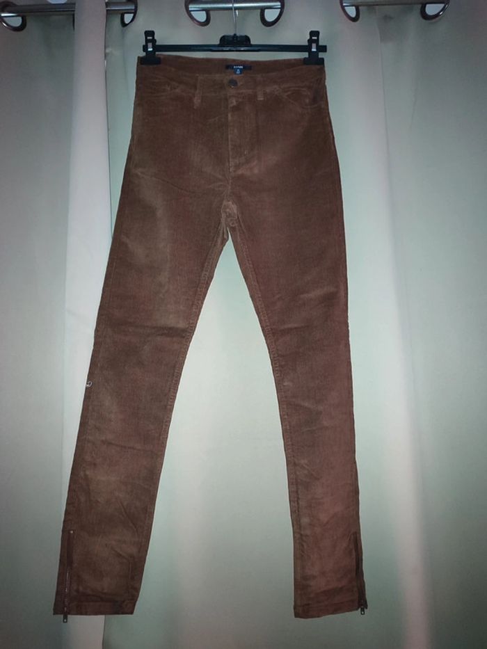 Pantalon en velours de chez Kiabi marron, taille 36, avec fermeture sur les chevilles, jamais mis 🏵️
