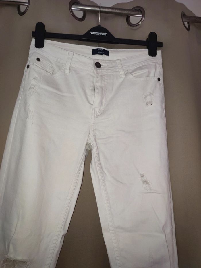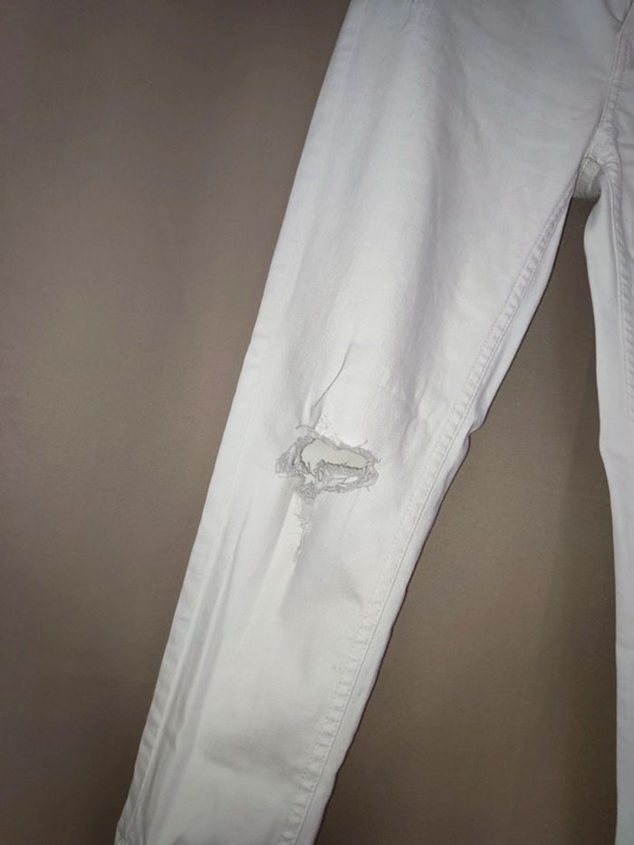 Jean skinny blanc Kiabi taille 36 troué, avec des fermetures au niveau du bas 🌼 #jeans #jeanskinny
