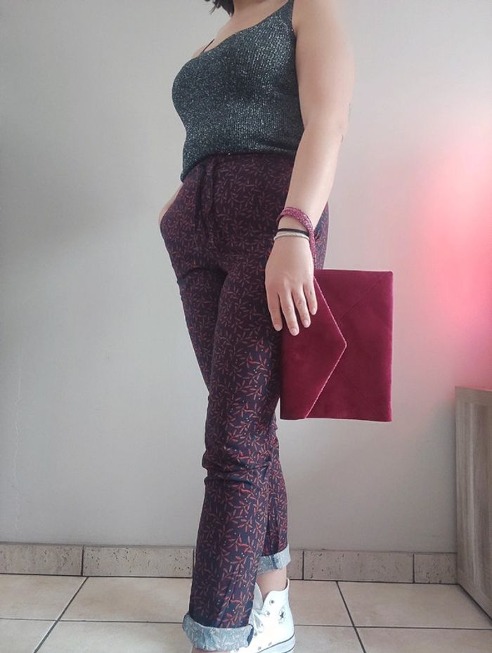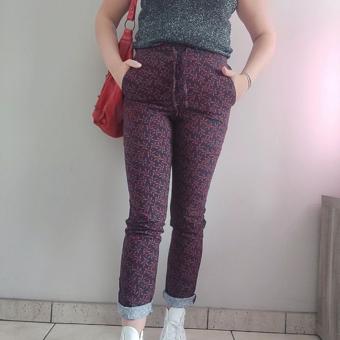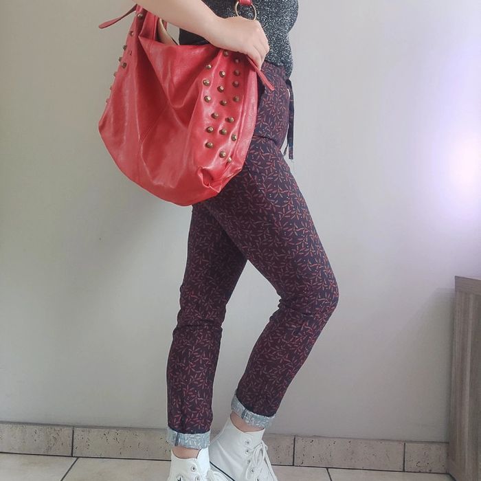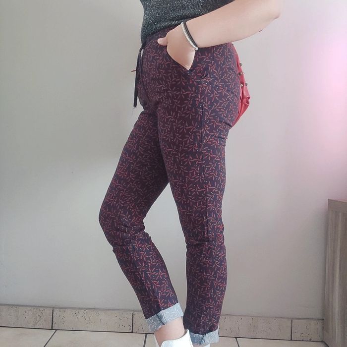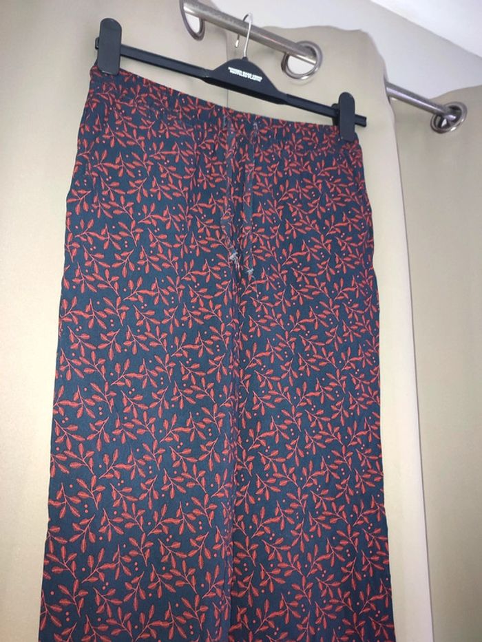 Pantalon fluide noir à motif petite feuille rouge très peu porté, Kiabi, taille S 🌼 #pantalonfemme #kiabi