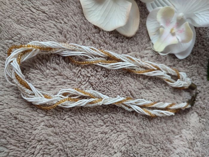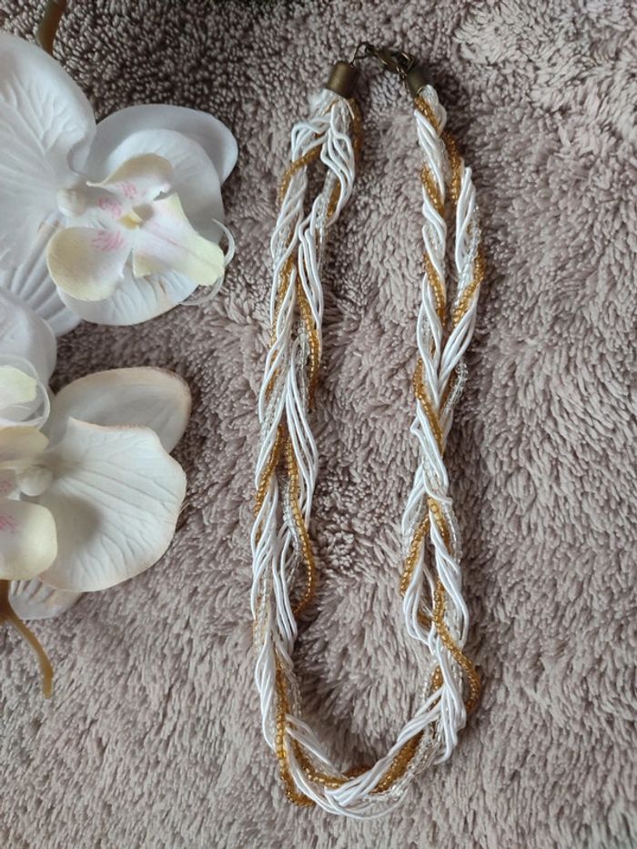 Collier fantaisie en perle blanc et doré 🌼