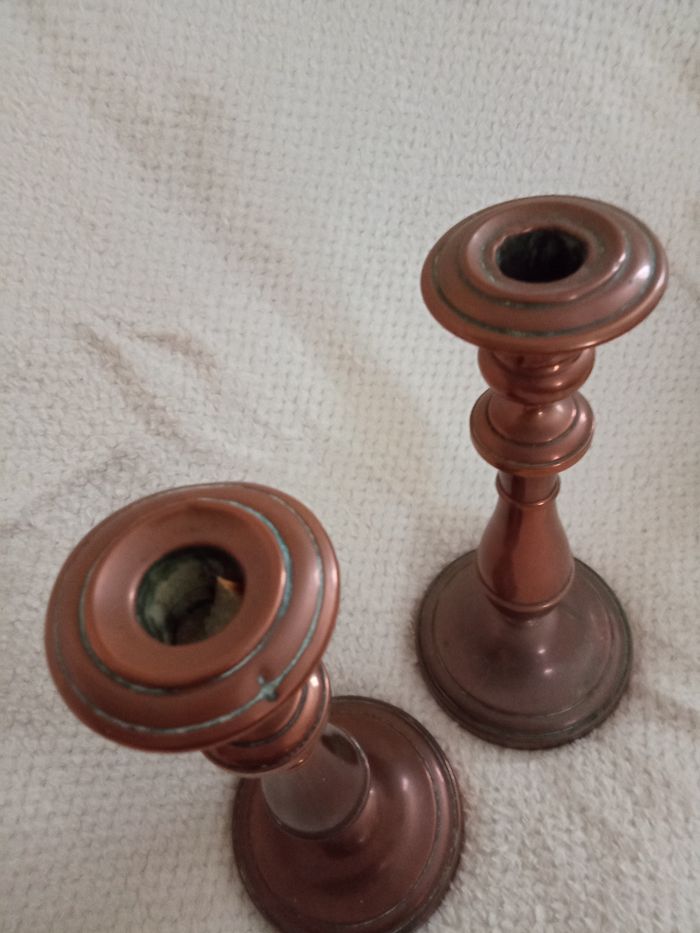 2 anciens Chandeliers/Bougeoirs en cuivre - photo numéro 1