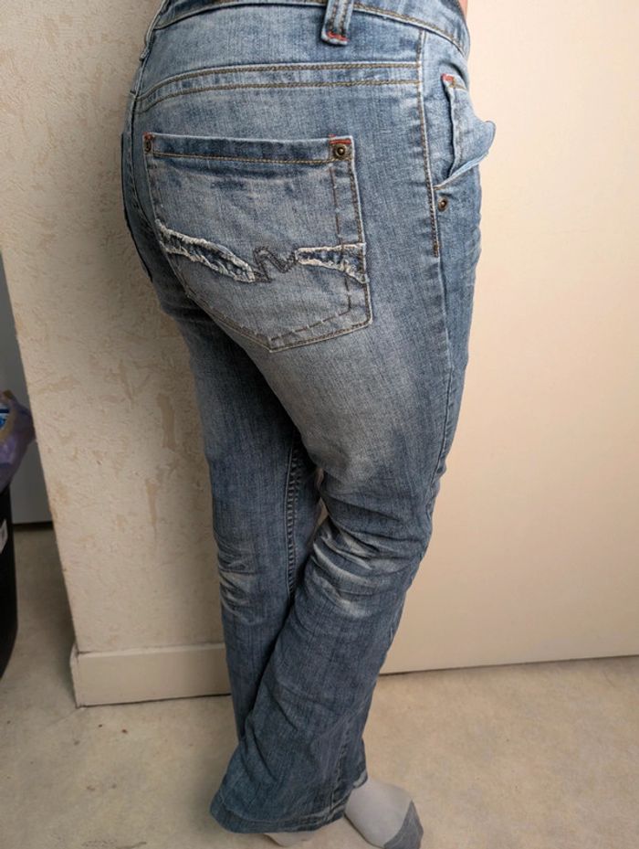 Jean taille basse patte d'éléphant stylé délavé - photo numéro 10