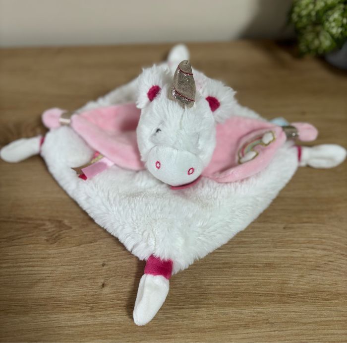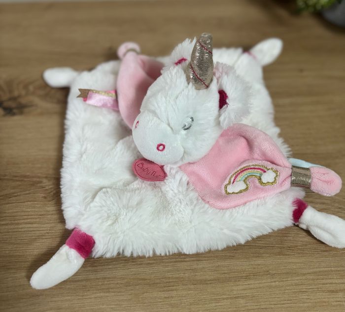 Neuf doudou plat licorne rose blanc arc en ciel babynat  baby nat ´ - photo numéro 1