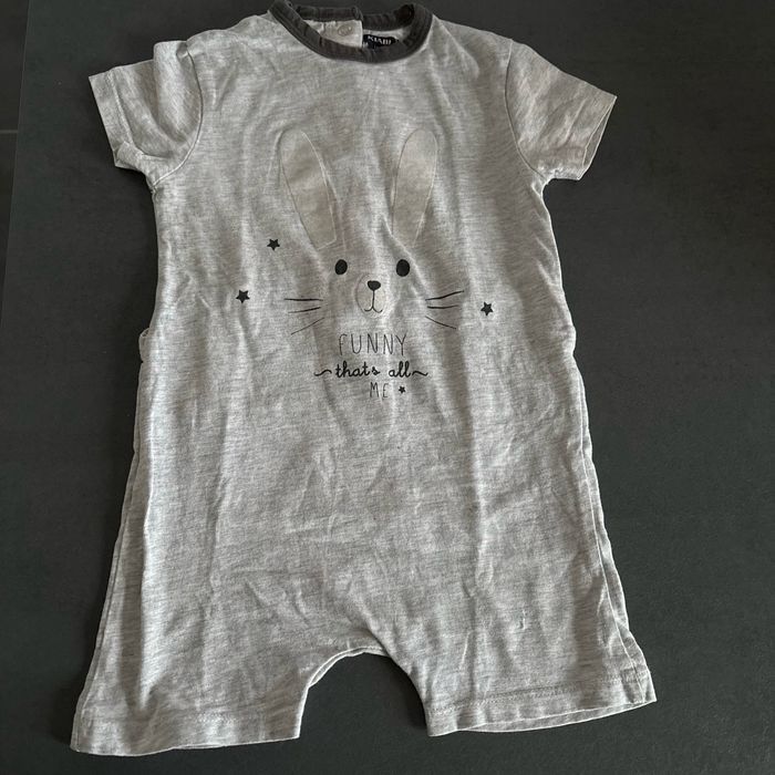 En bon état (va dernière photo légèrement tachée aux fesses) combishort de marque kiabi taille 18 mois Maison non fumeur et personne soigneuse N'hésitez pas à me demander si vous recherchez d'autres vêtements et taille.