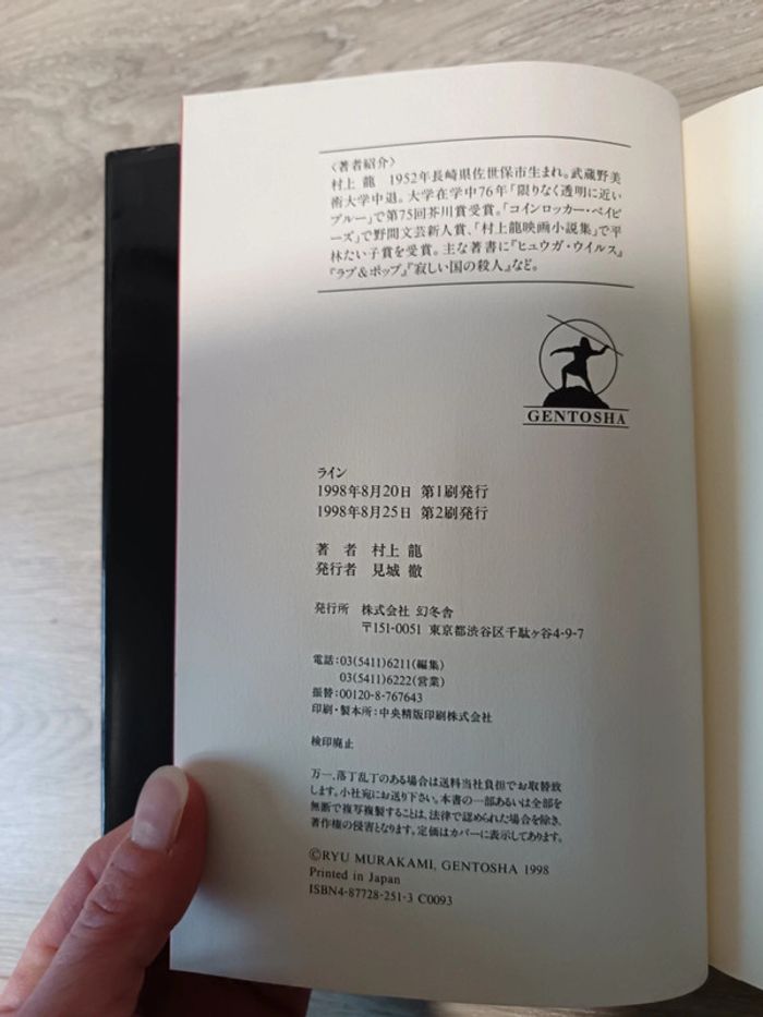 Roman en japonais Lignes The Line ライン Ryu Murakami Tankobon relié Bon état du livre en lui-même (léger jaunissement des pages), signes d'usure de la jaquette visibles en photos. D'autres romans et livres japonais disponibles, pour les trouver, cliquez sur le lien : #romanjaponais_charlilia #livrejaponais_charlilia Envoi rapide et soigné. #livres_charlilia