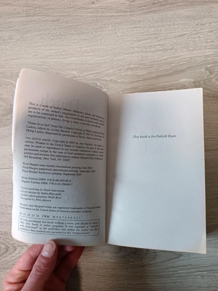 The Dutch House - A Novel Ann Patchett Livre en anglais. Entre état satisfaisant et bon état. Envoi rapide et soigné. #livres_charlilia